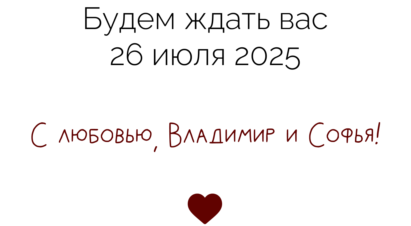 С радостью приглашаем вас на второй день нашей свадьбы, который состоится 27.07.2025
